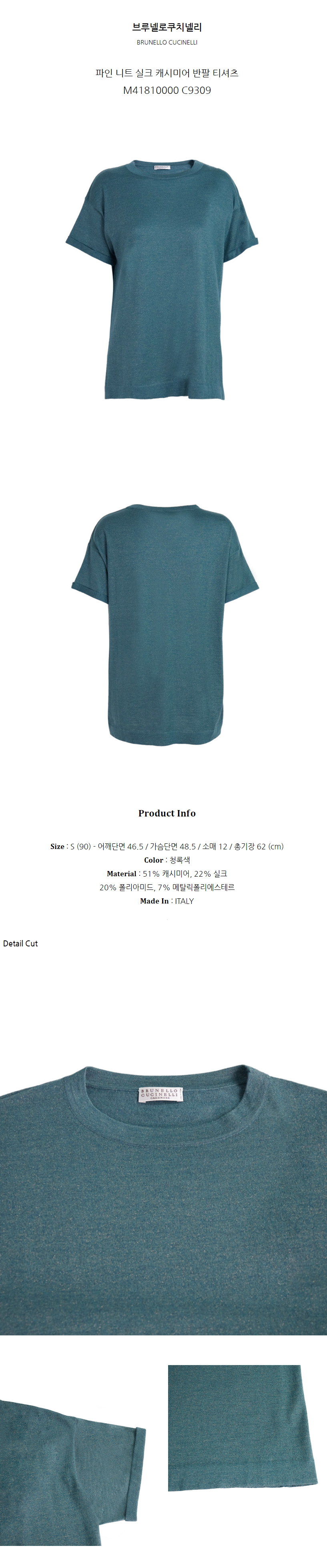 브루넬로쿠치넬리 파인 니트 실크 캐시미어 반팔 티셔츠 M41810000 C9309