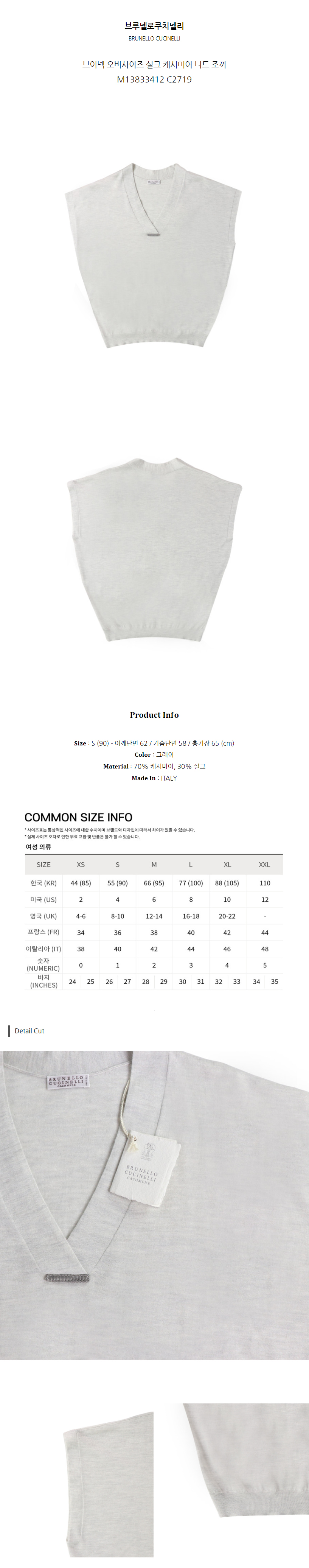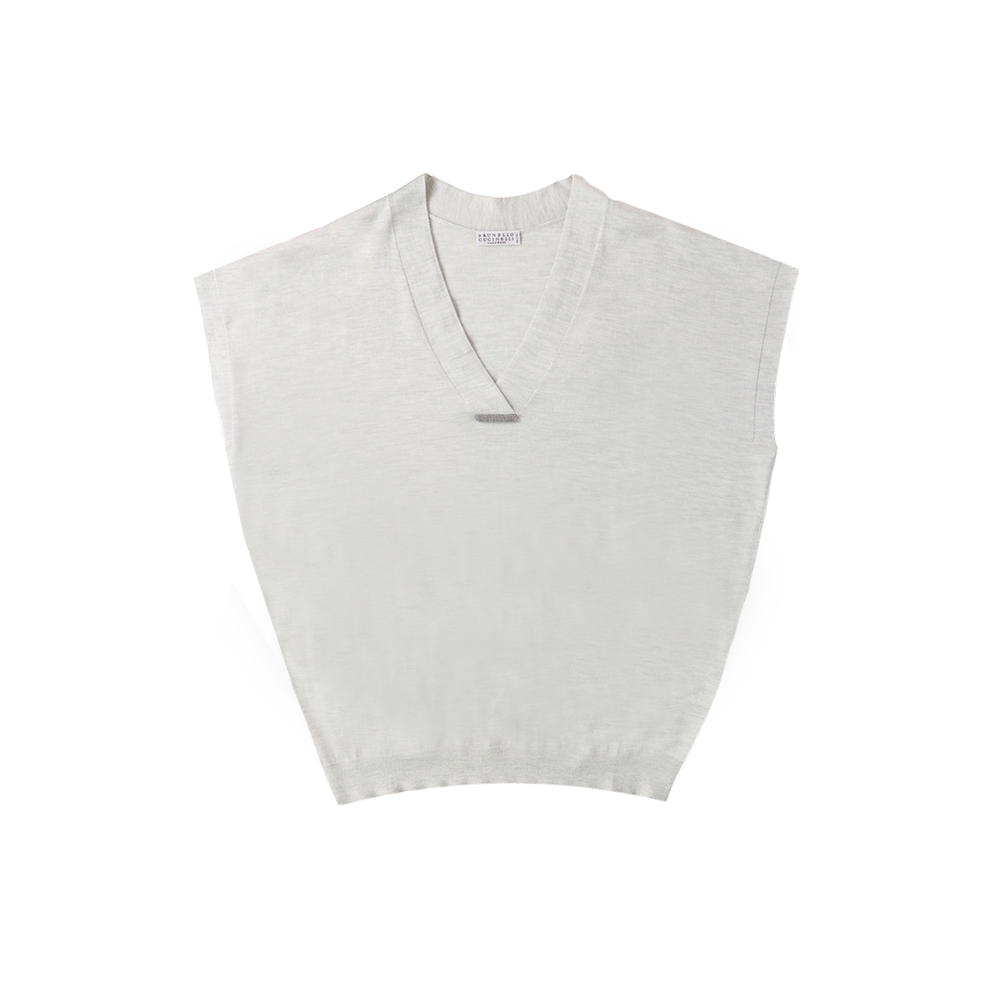브루넬로쿠치넬리 브이넥 오버사이즈 실크 캐시미어 슬리브리스 니트 조끼 M13833412 C2719