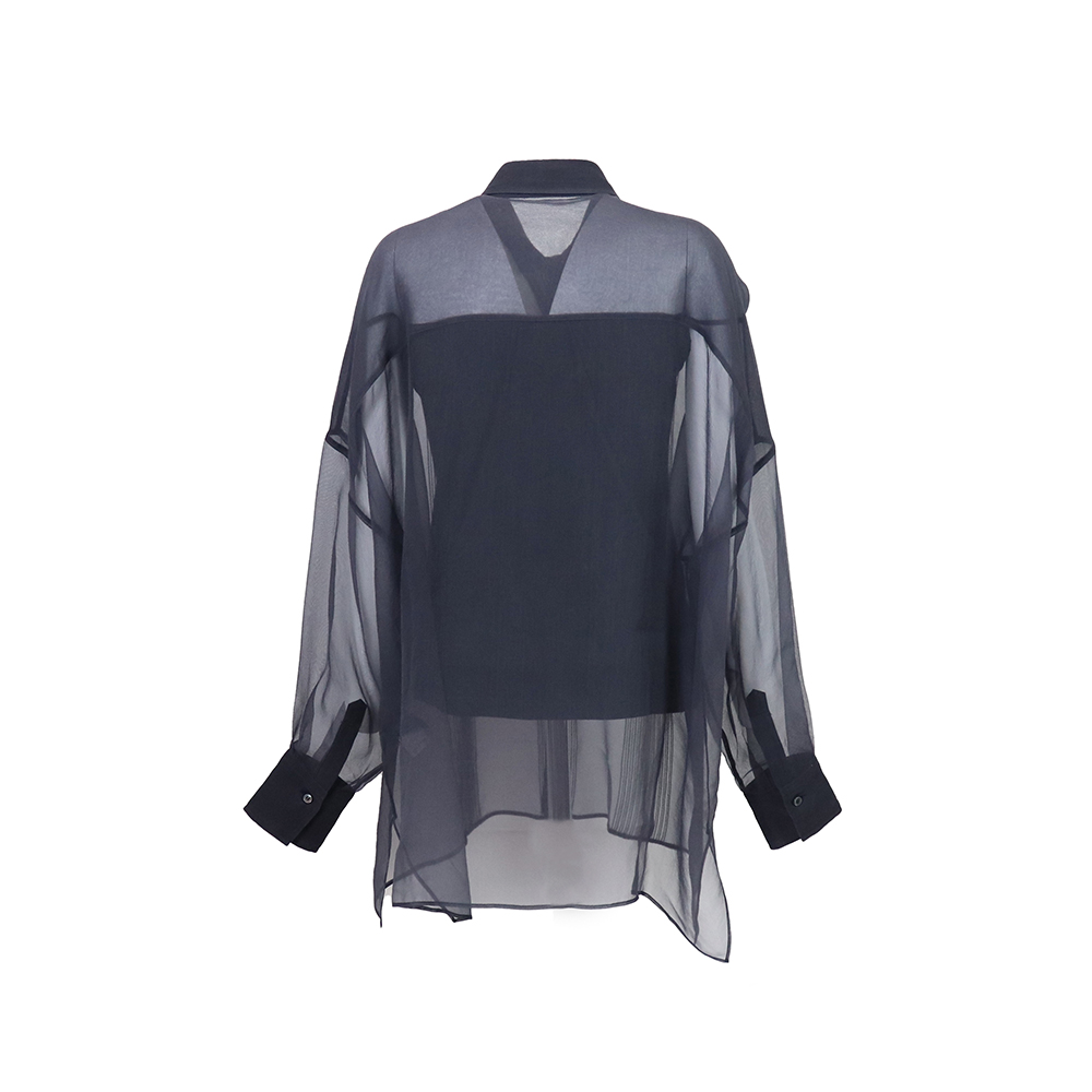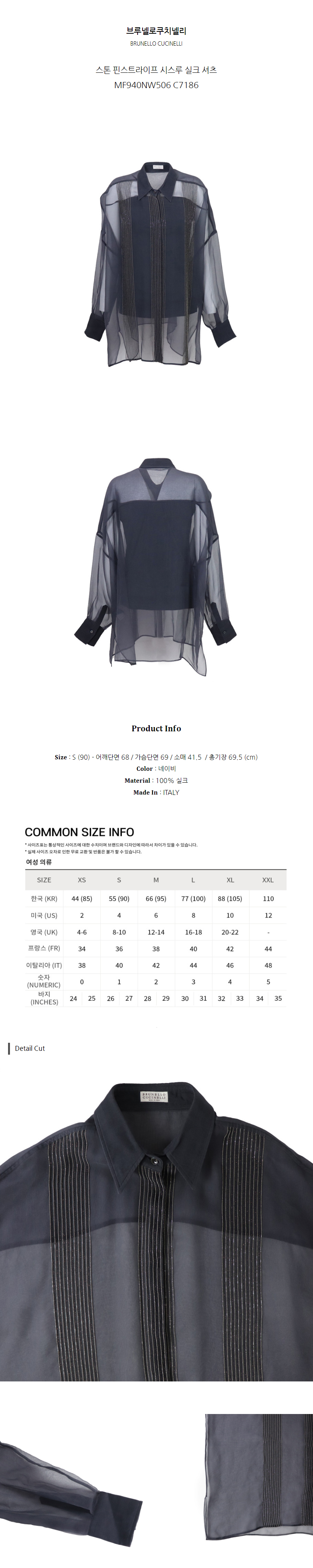 브루넬로쿠치넬리 스톤 핀스트라이프 시스루 실크 셔츠 MF940NW506 C7186