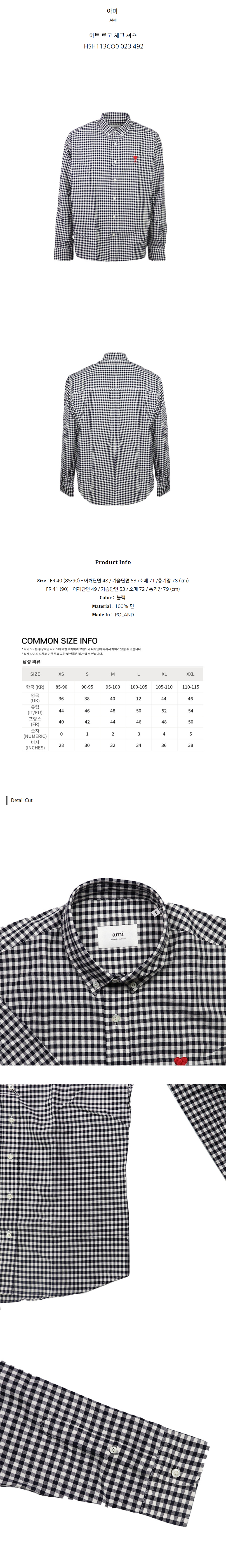 아미 하트 로고 체크 셔츠 HSH113CO0 023 492